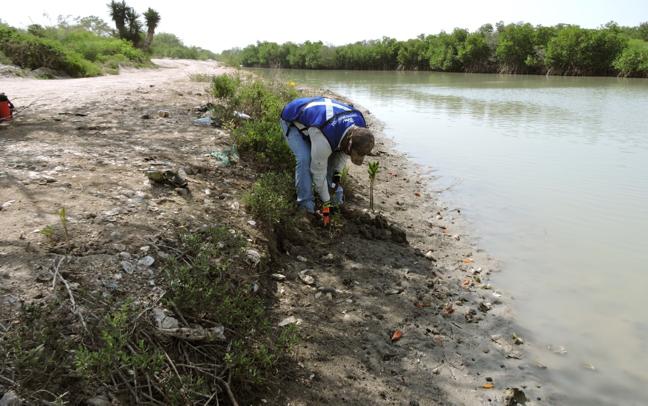 La Pesca, Soto la Marina, Tamaulipas- En el presente año el Gobierno de Tamaulipas ha reforestado más de 3 mil plántulas de mangle negro en una superficie de 3 kilómetros 350 metros lineales en la Laguna Almagre, dentro de la Laguna Madre y Delta del Rio Bravo en cumplimiento al “Proyecto Recuperación de Ecosistemas de Manglar.
