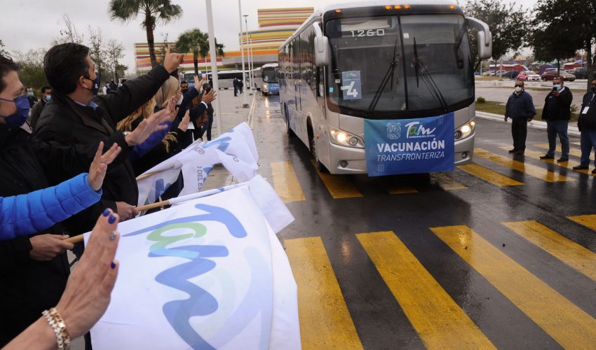 En una gira de trabajo en la frontera de Tamaulipas, el mandatario presidió la salida de 32 autobuses que estarán transportando desde Río Bravo, Reynosa y Matamoros hacia el Puente Donna, en el Estado Texas a 3 mil beneficiarios diariamente debidamente registrados con el objetivo de recibir el inmunológico.