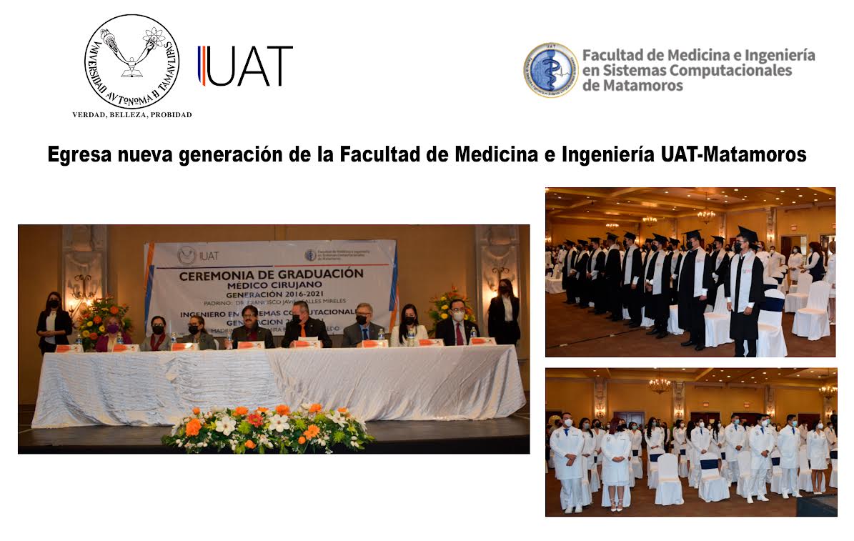 Ciudad Victoria, Tamaulipas.- La Facultad de Medicina e Ingeniería en Sistemas Computacionales de Matamoros (FMEISCM) de la Universidad Autónoma de Tamaulipas (UAT) entregó una nueva generación de profesionales comprometidos con el desarrollo de la sociedad.