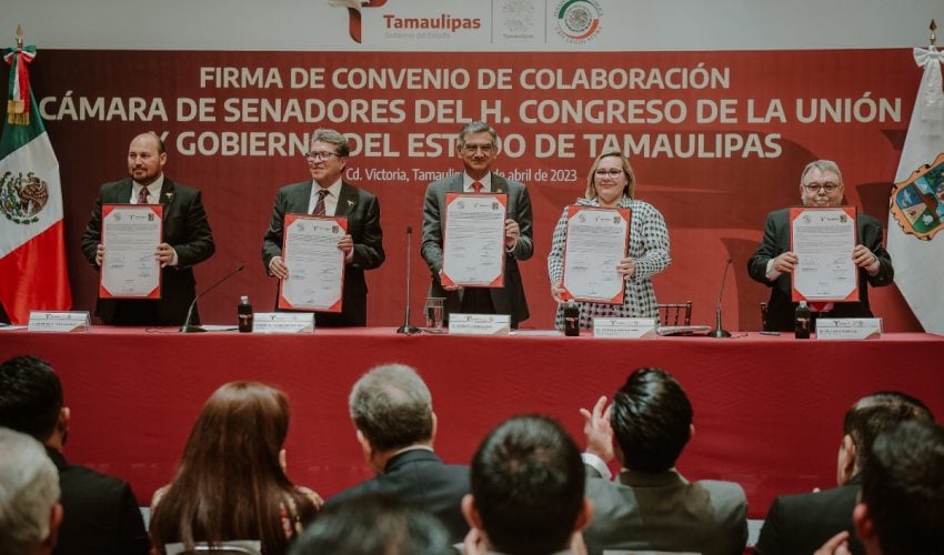 Ciudad Victoria, Tamaulipas. La transformación de México y de Tamaulipas demanda compromiso y disposición para dejar atrás las prácticas de políticas regresivas, que pervertían el verdadero sentido del servicio público, afirmó el gobernador de Tamaulipas Américo Villarreal Anaya, en el marco del convenio de colaboración que signó el gobierno estatal con la Cámara de Senadores del Congreso de la Unión, para brindar capacitación y profesionalización a las y los trabajadores.