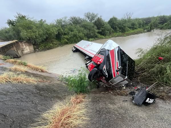 Jiménez, Tamaulipas.- Personal de la Guardia Estatal de Apoyo Carretero Comisionado a la Estación Segura Vicente Norte acudió al río Pilón en atención a un reporte de volcadura de tractocamión.