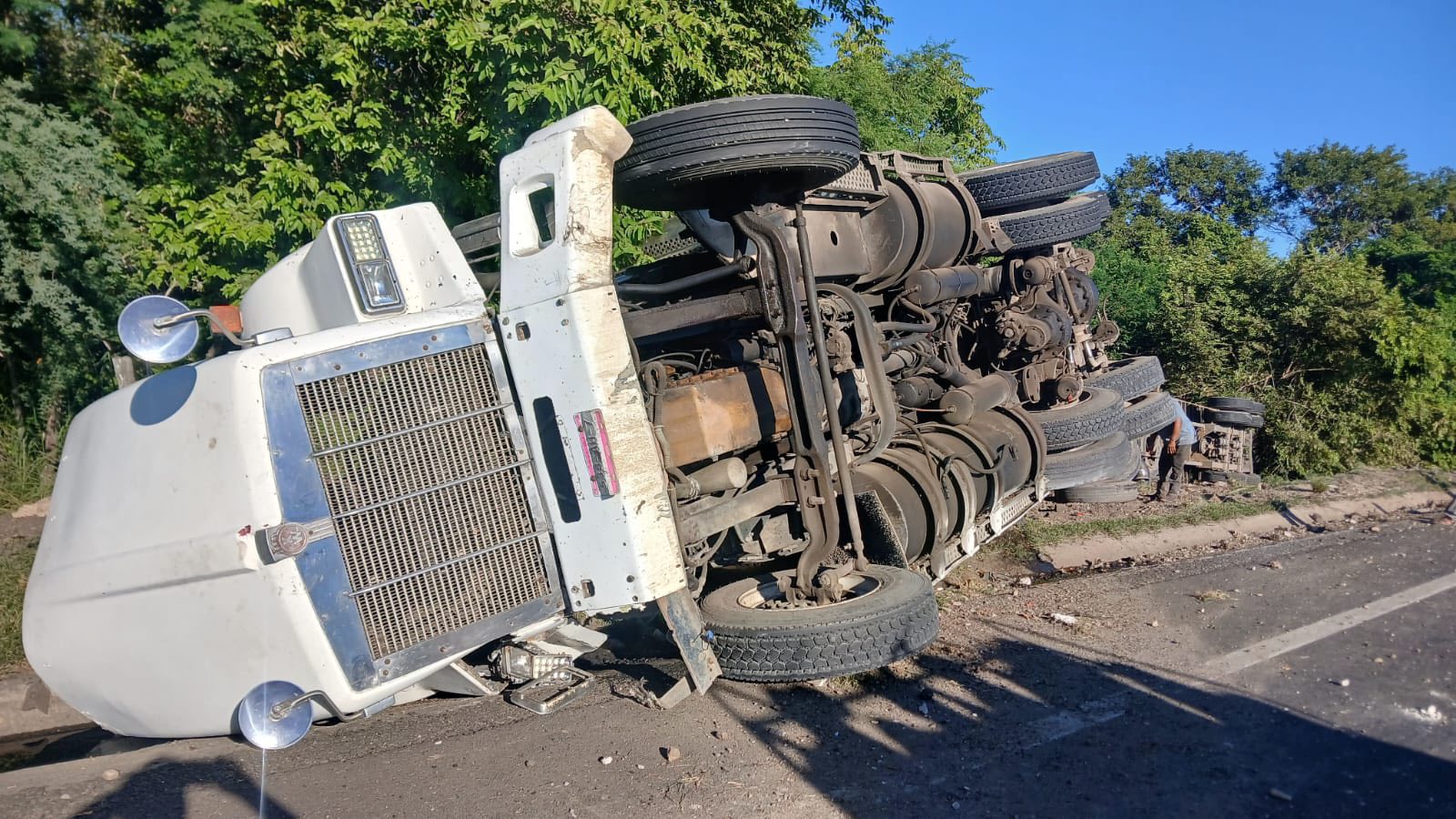 Altamira, Tamaulipas.- La circulación vehicular sobre la Carretera Federal 80 en el tramo Tampico-Mante se mantiene parcialmente suspendida a la altura del kilómetro 46, luego de un accidente vial que involucró a un tractocamión.