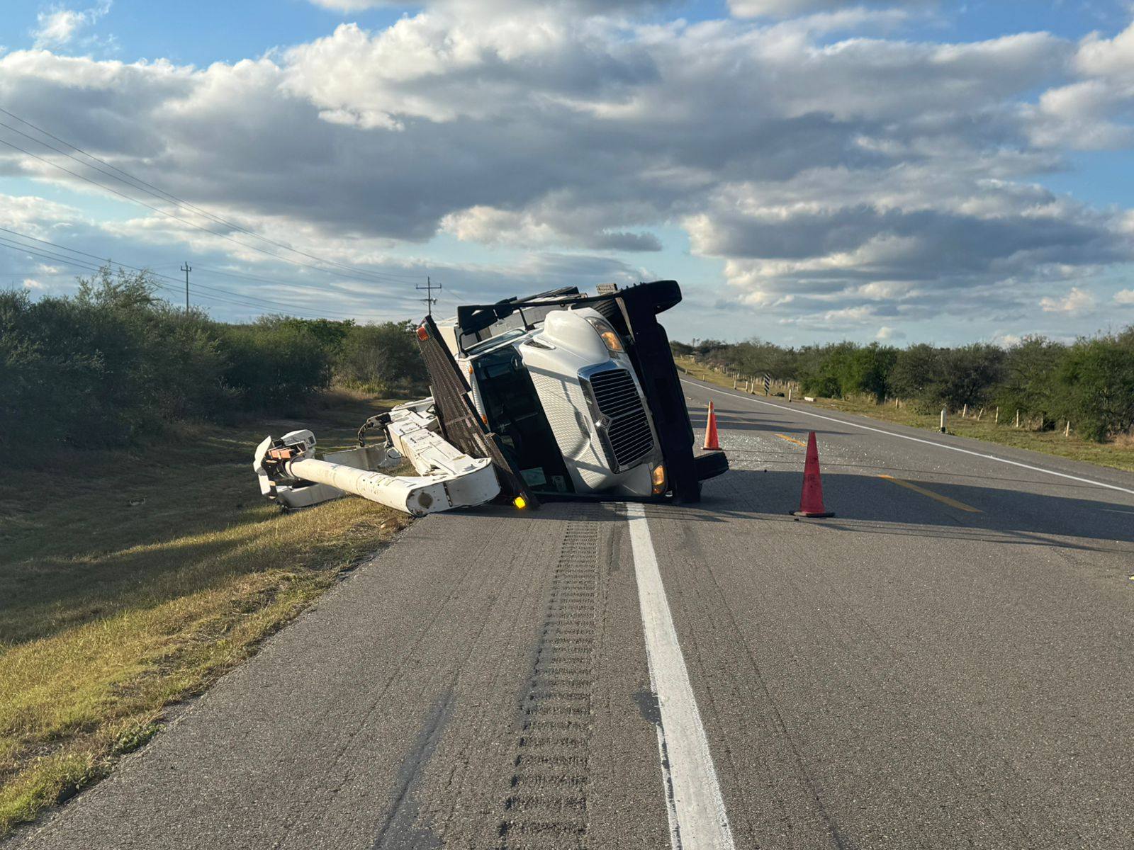González, Tamaulipas.- La circulación vehicular se mantiene parcialmente suspendida sobre la Carretera Federal 81, en el tramo González–Llera de Canales, luego de registrarse un accidente de tránsito que involucró la volcadura de un camión.
